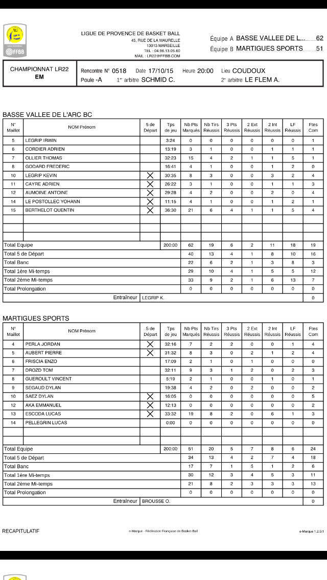Un match que l on aurait dû gagner si les hommes en gris (cf stats) ne s en étaient pas mêlés surtout dans le 4eme QT en nous sifflant 3 anti sportives fantômes alors que l on est devant (+4) et qui nous refait passer à -4pts car les adversaires transformaient les LF et leurs possessions.